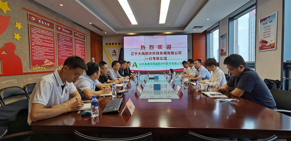 5月25日,遼寧大禹防水科技發(fā)展有限公司生產(chǎn)總監(jiān)于在宇一行5人到山東高速華瑞公司考察交流。建材集團瀝青事業(yè)部總經(jīng)理徐風華、瀝青事業(yè)部副總經(jīng)理胡秉磊,山東高速華瑞公司總經(jīng)理盧新春及公司相關負責人參加交流座談會議。