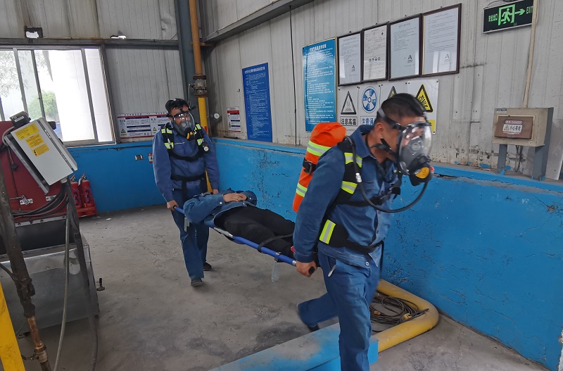 4月21日,華瑞公司加工廠組織開展職工中毒、窒息事故專項(xiàng)預(yù)案演練。天然氣泄漏引起的中毒和窒息事故有極大的危險(xiǎn)性和極高的致傷率,公司安全環(huán)保部根據(jù)加工廠廠區(qū)自身特點(diǎn)和實(shí)際情況制定演練預(yù)案,并進(jìn)行現(xiàn)場演練。